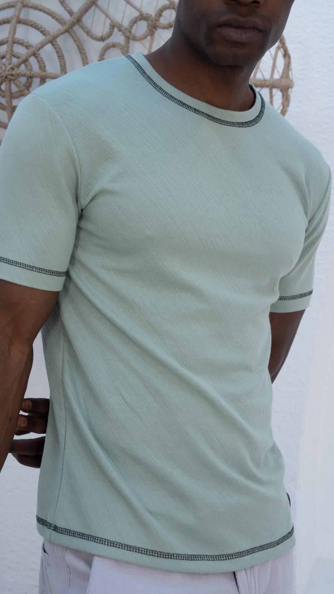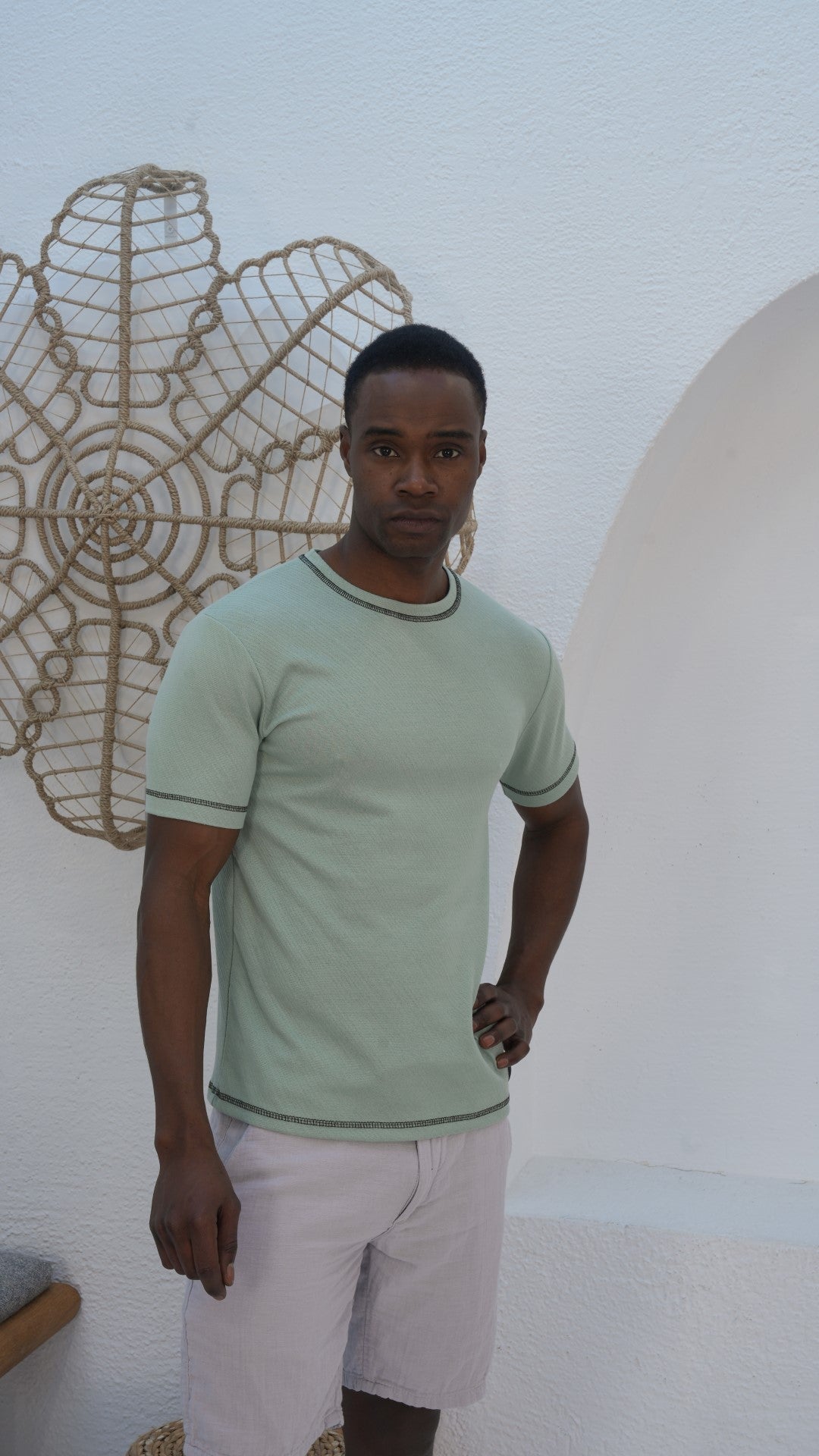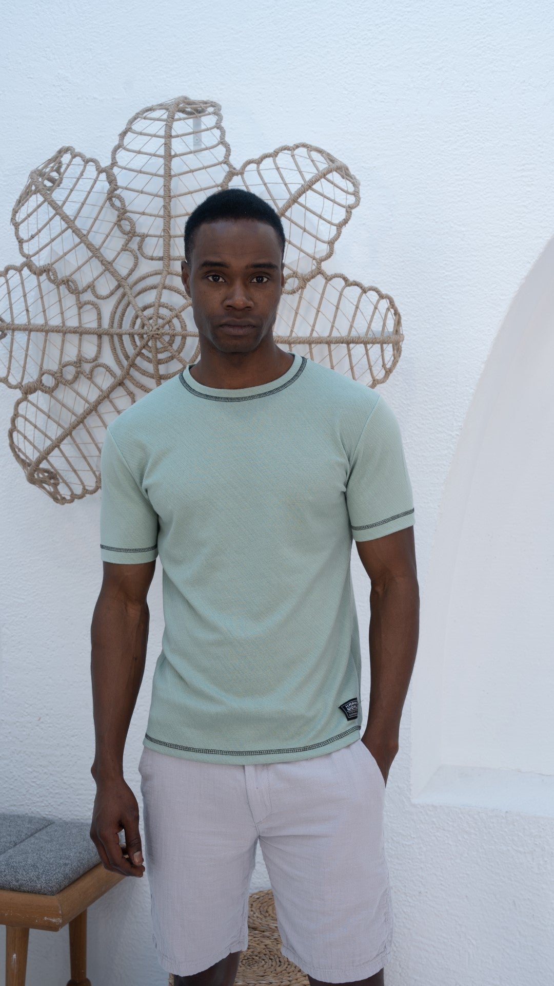 T-Shirt Détente Vert d'Eau à Bordures Contrastées