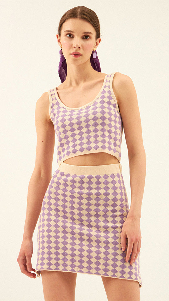 Rafraîchissez votre style estival avec cet ensemble crop top et jupe à damier, qui évoque une ambiance ludique et tendance.... En savoir plus