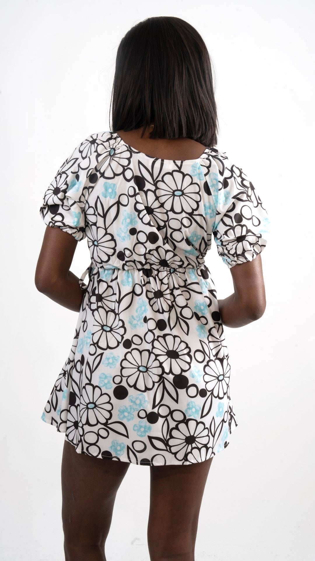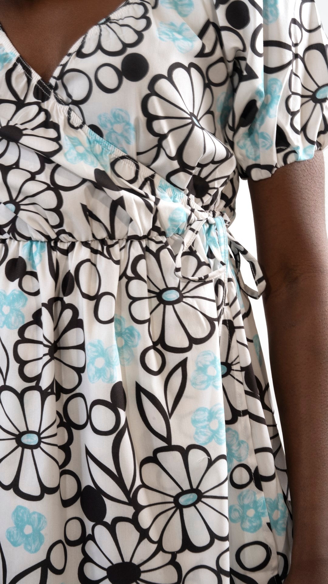 Cette robe légère a un motif floral avec des touches de bleu ciel, idéale pour les promenades ou les occasions... En savoir plus