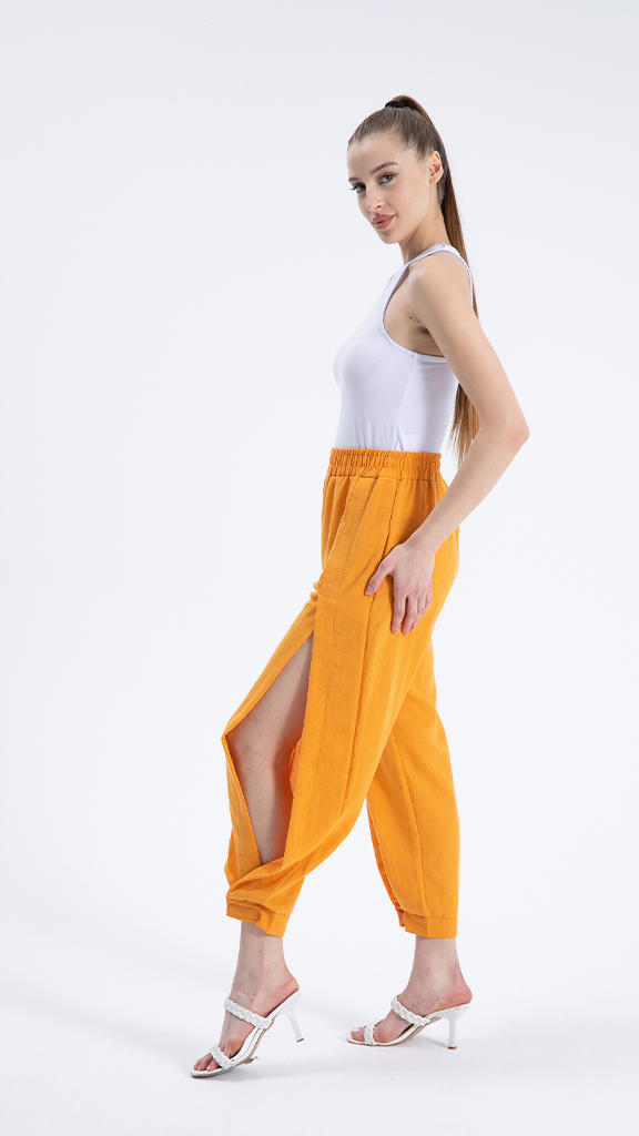 Pantalon Sarouel Aéré à Fentes Latérales - Orange