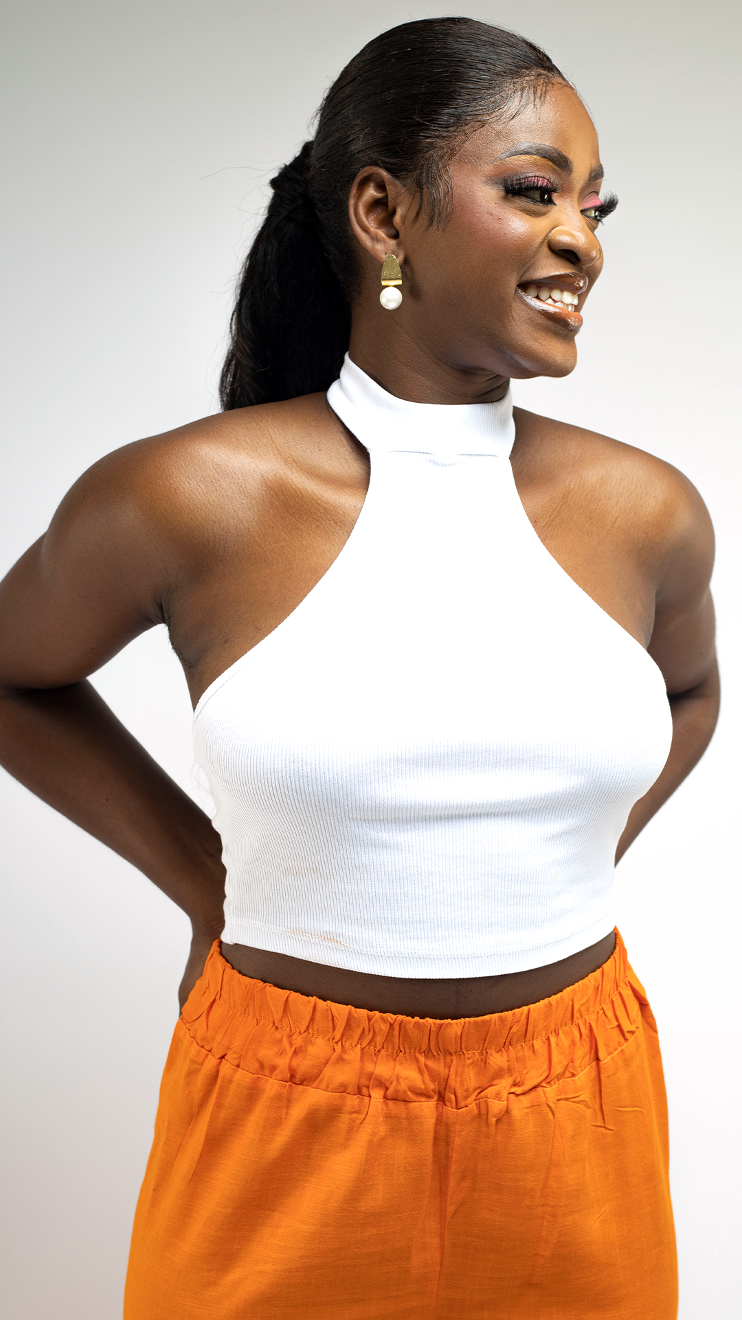 Ce top côtelé halter immaculé est une pièce essentielle pour une esthétique chic et épurée. Conçu avec un col montant... En savoir plus